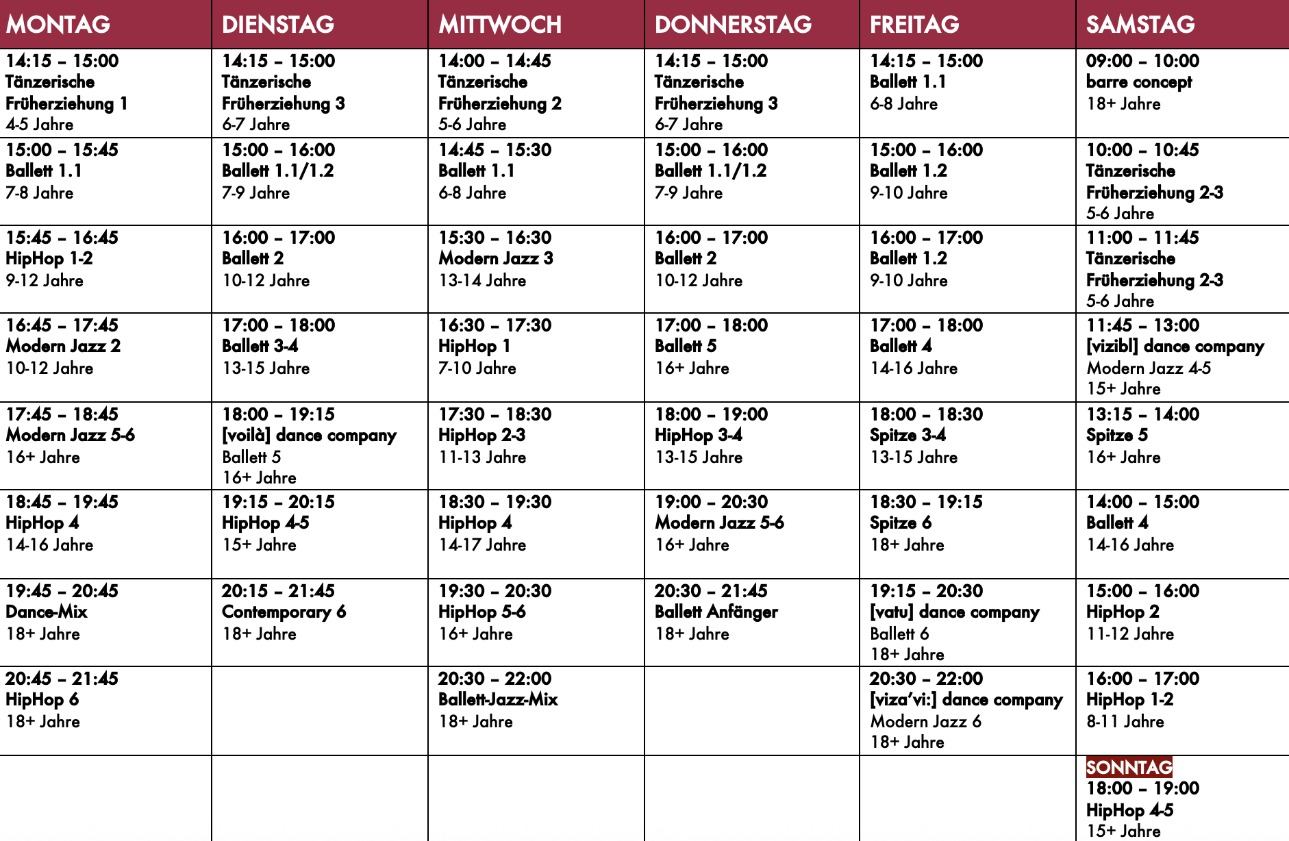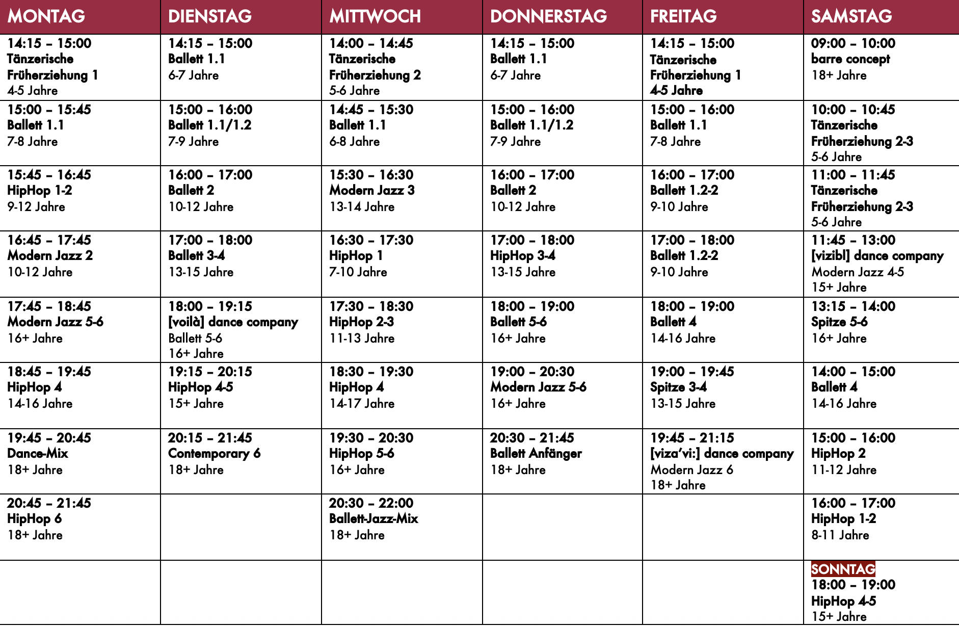 Unser Angebot umfasst unterschiedlichste Tanzstile und verschiedene Altersklassen.